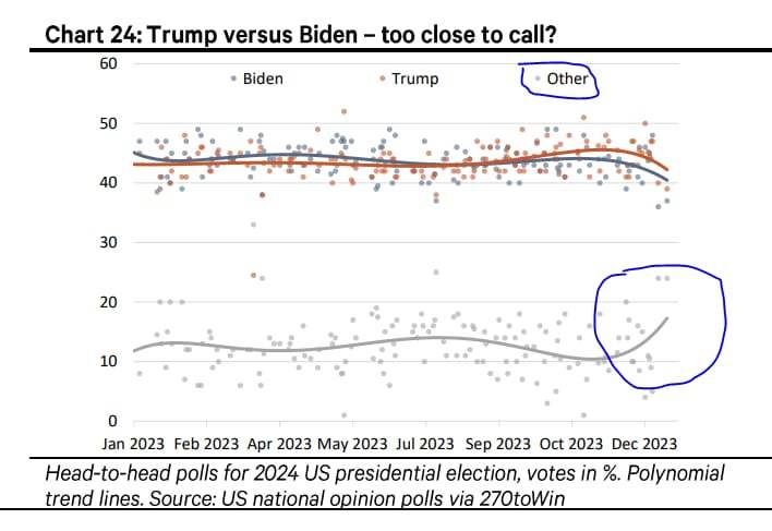 1. For most of 2023, many people have asked if there will even be an election in 2024. My response has been: Yes, there will be an election but no one will accept the outcome. Given the numbers you present in your post, I suspect I’m still on the right track.