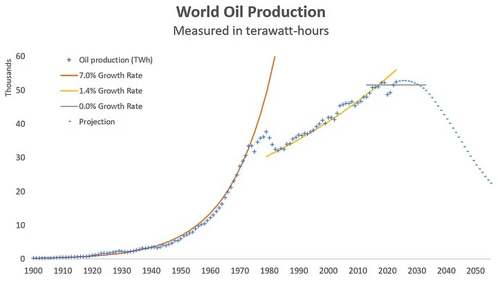 The second blog I follow closely is the Honest Sorcerer, which focuses heavily on energy, see here. Again, their writing concludes that we are on a type of plateau until around 2030 in terms of overall energy production, after which things deteriorate in terms of overall quantity and quality of energy production. This will trigger the end of economic growth as we know it, and a period of radical simplification of complexity, forced by the end of economic bubbles and the realities of energy depletion.